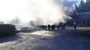 driver med kurs innen skadeforebyggende arbeid. Her kan man ved selvsyn og aktiv deltagelse få oppleve ulike typer brann i praksis og hvordan man da skal opptre. Tunnelbranner er et stadig tilbakevendende problem, og alle har vel ulykken i Gudvangatunnelen for ett år siden friskt i minne. Så en tunnelbrann fikk komiteen, NLFs deltagere og pressen også være med på. En lastebil ble satt fyr på inne i en tunnel, og det var mange som ble overrasket over hvor fort flammene bredte seg og ikke minst hvor fort tunnelen ble røyklagt.