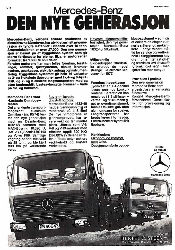 Personbilparken i 1975 var mye mer variert, fargerik og kreativ enn den er i dag. Floraen av merker og modeller var enorm, det samme gjaldt variasjonen på kvalitet og holdbarhet. Men det var ikke bare personbilene som bød på et større spekter. Lastebilene var også en helt annen historie i 1975. Her har vi samlet et knippe reklamer som har stått på trykk i NLF-Magasinets forgjenger Lastebilen.