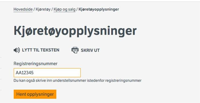 3. Tast inn registreringsnummeret på kjøretøyet du ønsker å sjekke opp.