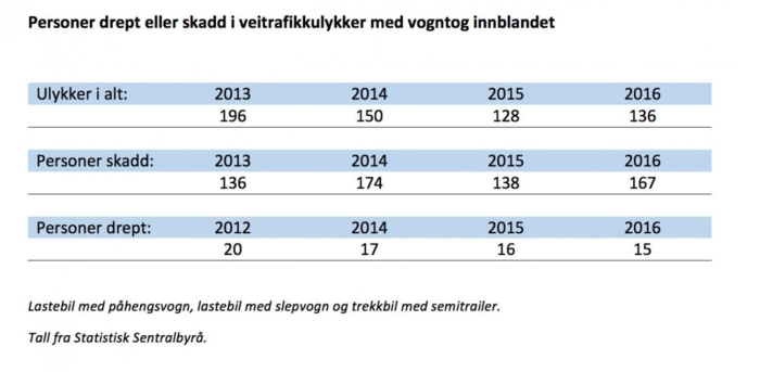 Han kan glede seg over tall fra SSB som viser at antallet drepte i ulykker med tunge kjøretøy per november 2017 er 30 prosent lavere enn på samme tid i 2016. Og selv om antallet drepte i trafikken totalt sett økte fra 2015 til 2016, har det aldri vært registrert færre antall drepte i ulykker med tunge kjøretøy som i fjor.