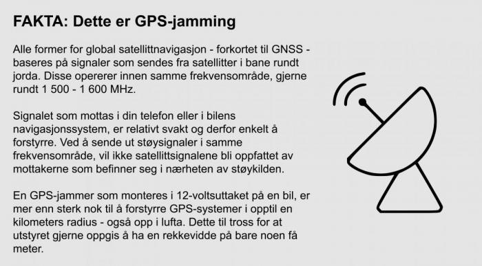 GPS-jamming har blitt et kjent begrep i media de siste månedene, kanskje først og fremst på grunn av russernes bruk av støysignaler i sammenheng med stridsøvelser, som også har påvirket GPS-tjenester på norsk side av grensen. Men det er slett ikke bare i militærsammenheng at såkalt GPS-jamming er et tema.