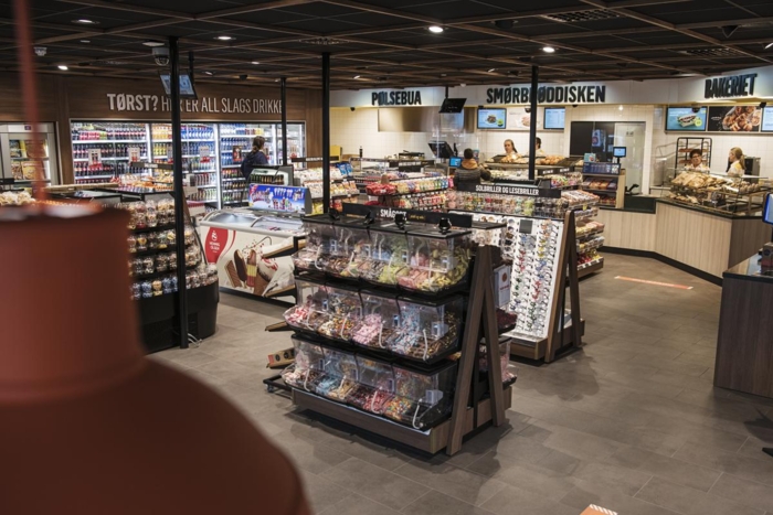 - Døgnåpen energistasjon/kiosk med mulighet for kjøp av mat og drikke