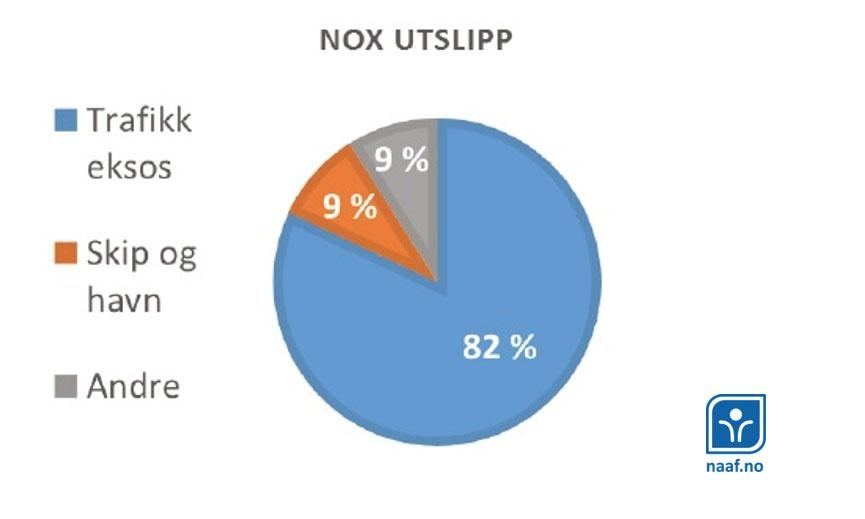 Og her blir bildet noe annerledes - tallgrunnlaget indikerer at så mye som 82 prosent av det totale NOx-utslippet i Oslo stammer fra trafikken.