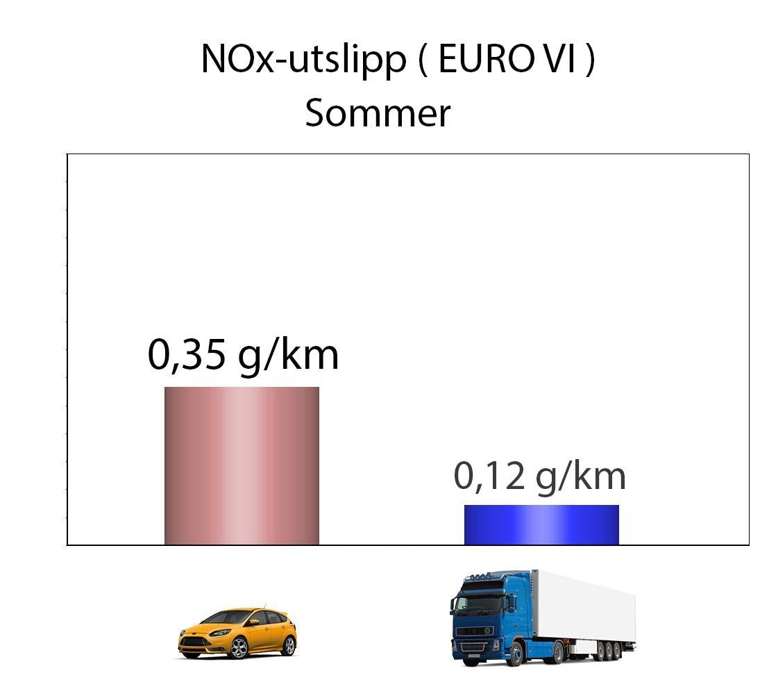 Da TØI i fjor høst lanserte sin rapport som tok for seg hvorvidt Euro VI-kjøretøy holder de utslippsnivåene de lover, ble konklusjonen at tunge kjøretøy slipper ut langt mindre NOx enn dieselpersonbiler. Faktisk tre ganger så lite, uttalte TØI-forsker Rolf Hagman på Dagsrevyen. Dette med utgangspunkt i sammenlignbare utslippstall innhentet på sommerstid.