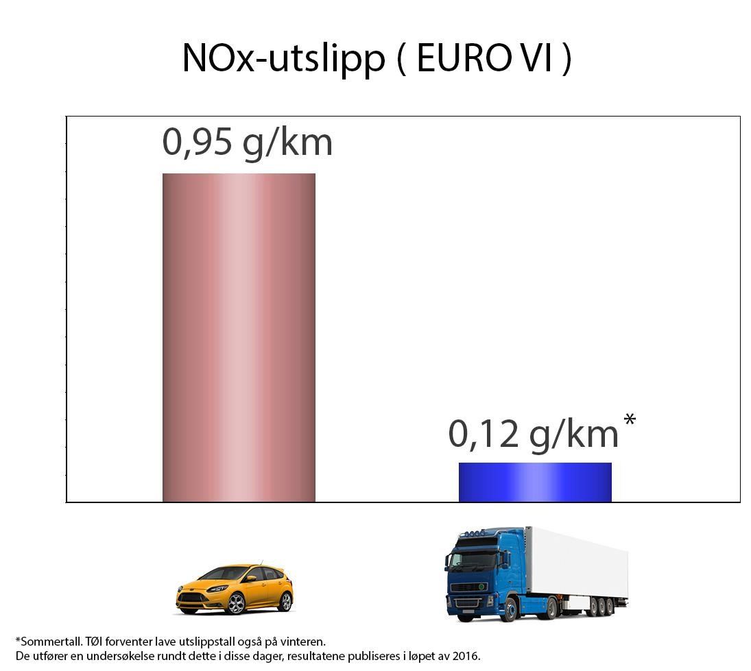 Sistnevnte har ikke fått kjøretillatelse bare fordi de driver livsviktig nyttetransport. Det har seg nemlig slik at lastebilene knapt forurenser lokalt i det hele tatt. Derfor er det fullstendig uproblematisk å la store vogntog stå på tomgang midt i Bergen sentrum, i alle fall sett fra et NOx-utslippsperspektiv. På vinterstid slipper en diesel-personbil i gjennomsnitt ut 0,96 gram NOx, i forhold til 0,35 på sommeren. En lastebil slipper bare ut 0,12 gram sommerstid og TØI forventer at vintertallene også er lave (endelige tall kommer senere i år). Men hvordan kan dette være mulig?