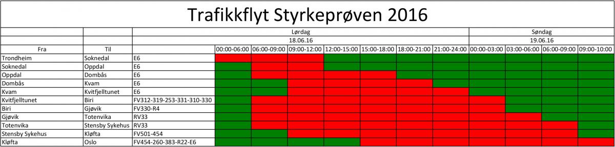 Rittet følger E6 fra Trondheim til Kvitfjell og vil i dette området være mest utsatt. Her er Østerdalen ideell som omkjøringstrasé siden den går langt utenom sykkelrittet. Deretter går traseene over på fylkesveger på vestsiden av Losna og Mjøsa til Biri, og RV4 videre til Gjøvik. E6 fra Fåvang vil derfor være upåvirket. Rittet fortsetter sørover fra Gjøvik langs RV33 på vestsiden av Mjøsa og fylkesvegene til Nedre Romerike. E6 følges siste veien inn til Oslo.