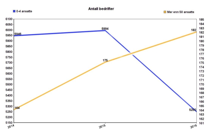 I følge SSB har antallet bedrifter i kategorien landtransport med færre enn fem ansatte falt med 11,7 prosent fra 2014 til 2016. Samtidig har antallet transportbedrifter med 50 eller flere ansatte økt med 11 prosent.