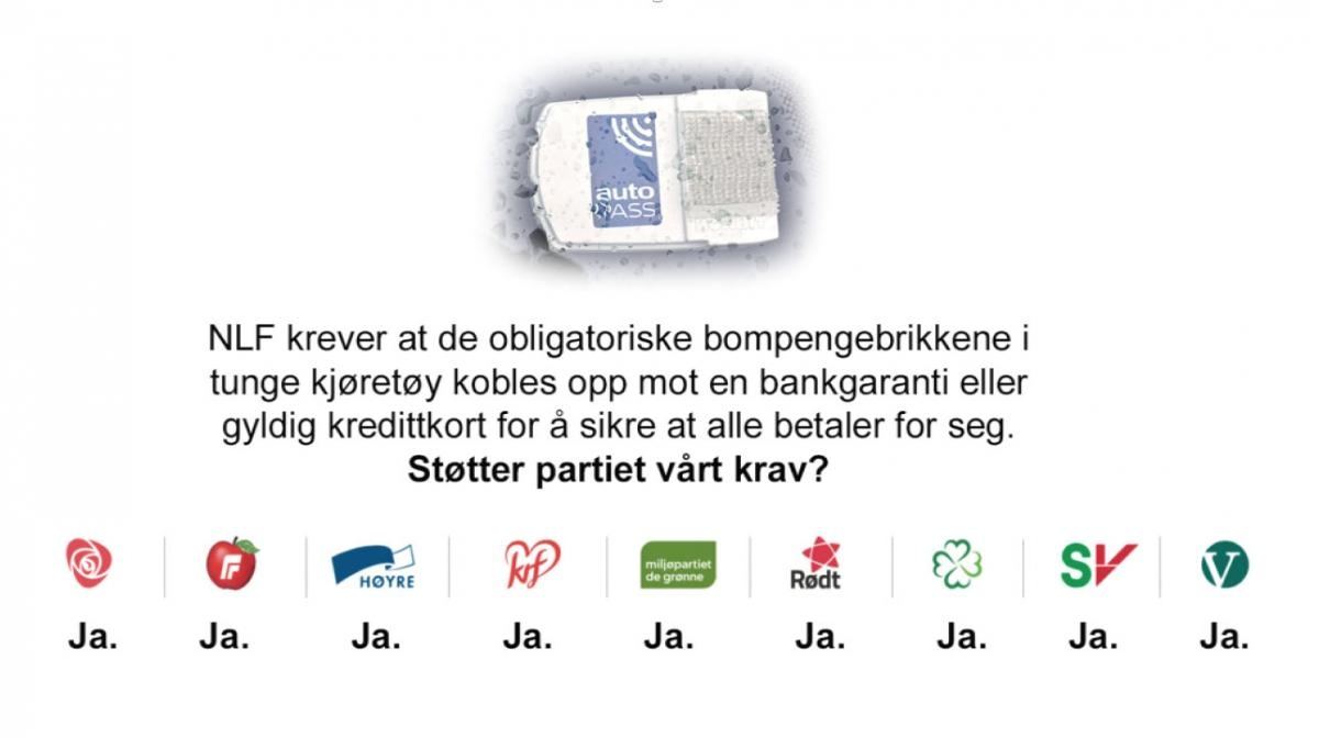 - Gjennom dette verktøyet kan du blant annet se at samtlige politiske partier støtter innførsel av kredittkort eller bankgaranti tilknyttet AutoPASS-avtalene, for å garantere innbetaling av bompenger fra utenlandske transportører, kommenterer Mo.