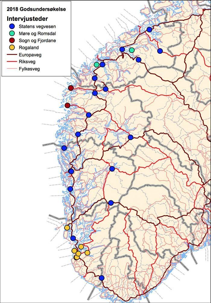Vil tilrettelegge bedre for godstransporten Videre ønsker deltakerne i undersøkelsen å lære mer om godsstrømmene for å bedre kunne legge til rette for en effektiv og mer miljøvennlig godstransport. Statens vegvesen håper også funnene fra undersøkelsen skal gi offentlige myndigheter, lokalt og nasjonalt bedre forutsetninger for å sikre konkurransekraft for transportsektoren og annen næring på Vestlandet. Undersøkelsen er et ledd i etatenes arbeid med å realisere målene i Nasjonal transportplan.
