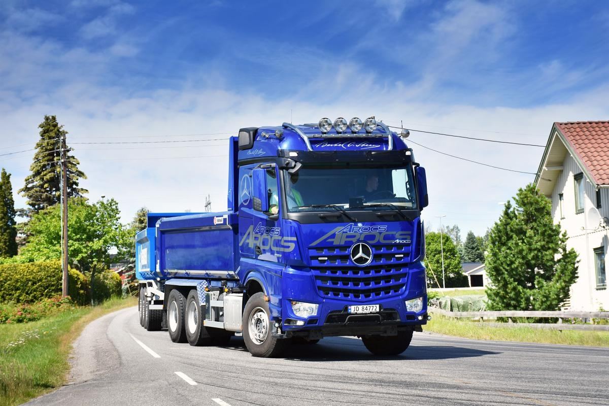 For å sikre mest mulig nøytrale forhold har man skaffet til veie et kjøretøy som er totalt ukjent for alle tre sjåførene: En 2019 Mercedes-Benz Arocs tippbil med tandem utlånt fra Isachsen Anlegg, utstyrt med en såkalt Turbo Retarder Clutch (TRC). Det skal kjøres med fullastet henger slik at total vogntogvekt er 50 tonn. Med 626 hk til disposisjon vil det ikke være noe problem å holde hastigheten oppe, men så var det dette med forbruket da...