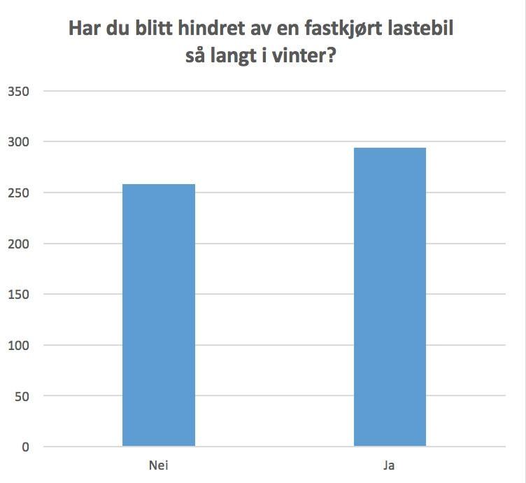 En uhøytidelig undersøkelse blant medlemmer i Facebook-gruppen «Yrkessjåføren.no» viser at mange har opplevd store forsinkelser på grunn av fastkjørte lastebiler så langt denne vinteren.
