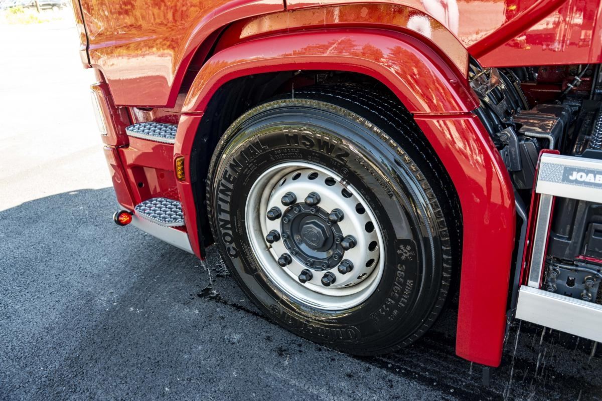 – Lengden er cirka en omdreining av et lastebilhjul. Rørene har spylerdyser langs hele røret som gir en meget grundig dekk- og felgrens. I tillegg er det underspyling, så det her er en total bilvask, fortelller Ulleberg.