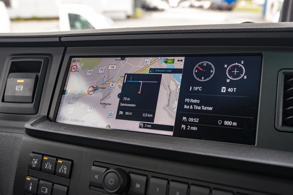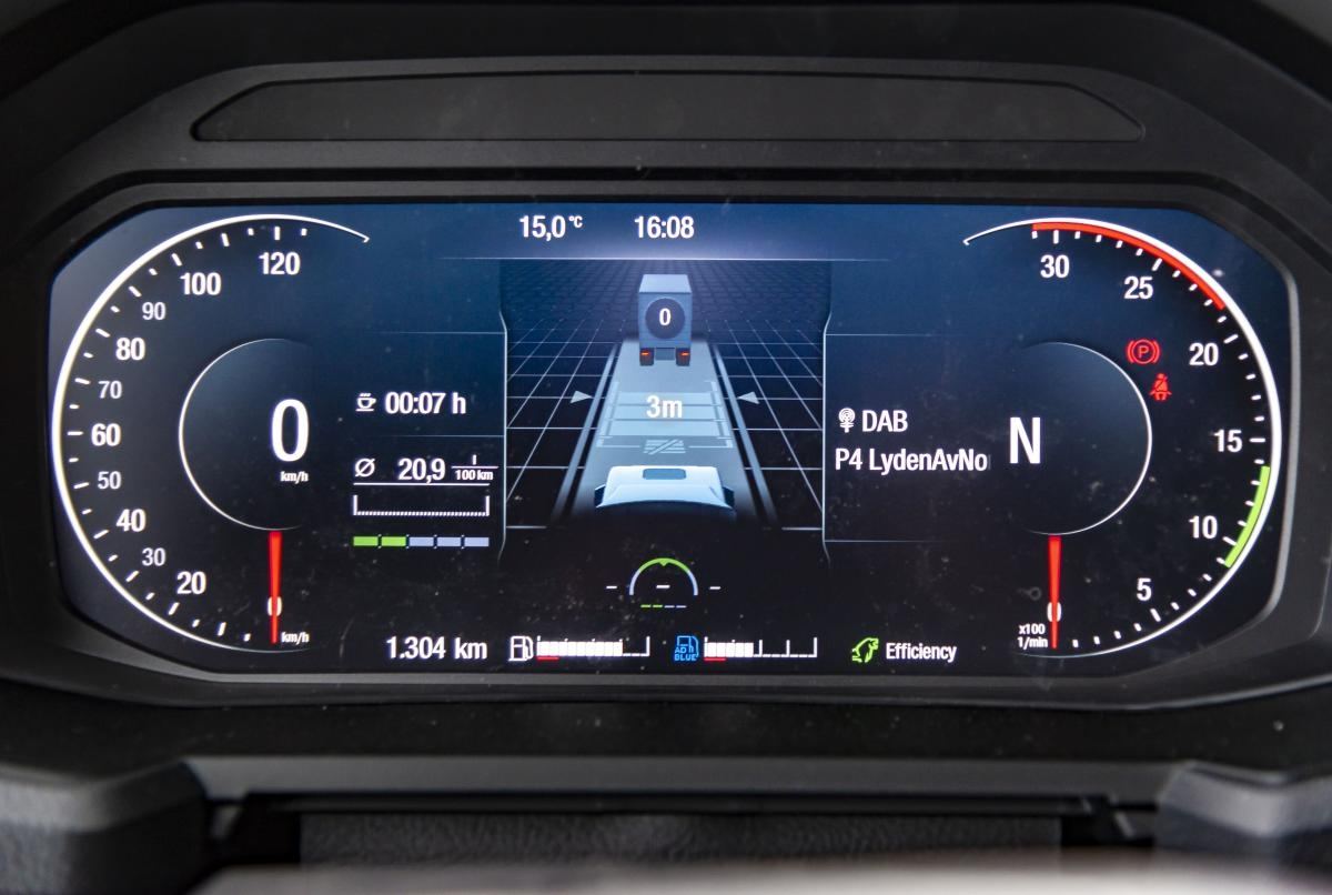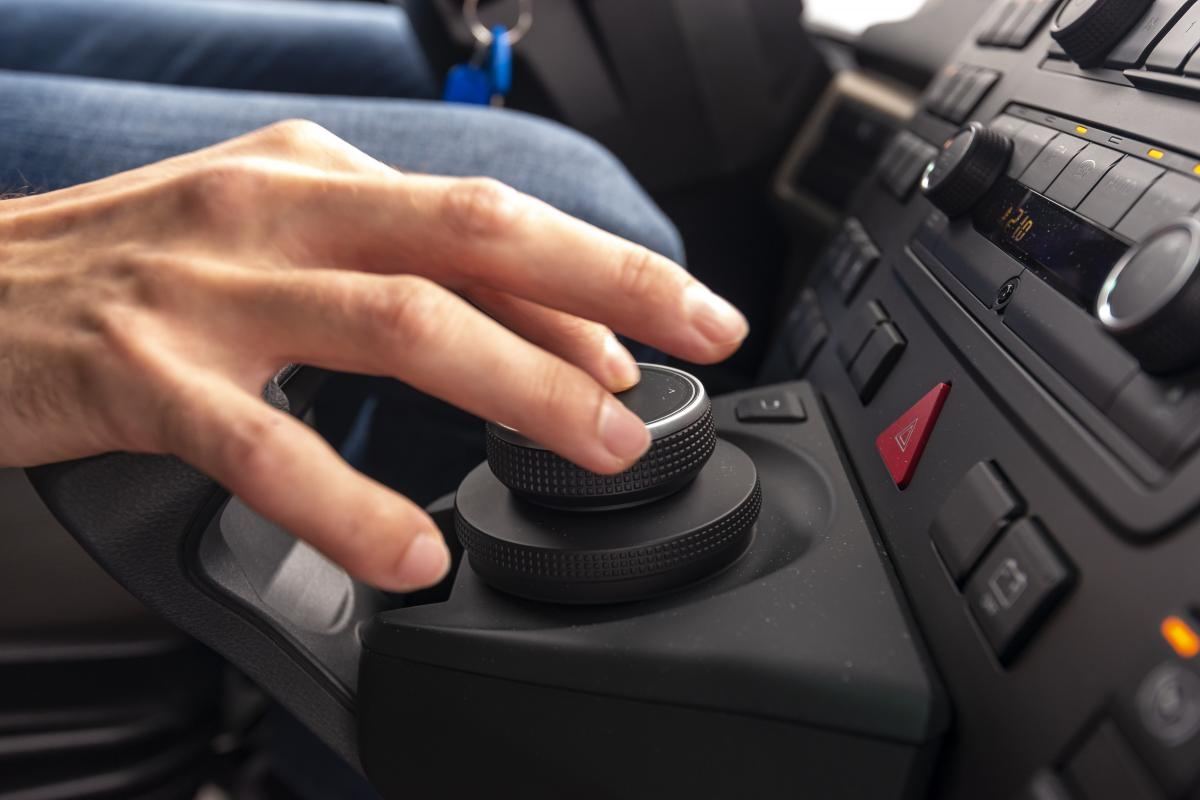 Testbilen vår var utstyrt med MANs nye infotainmentsystem, der alt kontrolleres ved hjelp av et dreibart og trykkbart hjul med berøringsoverflate. Dette krever litt tilvenning, men i løpet av kort tid går det automatisk.