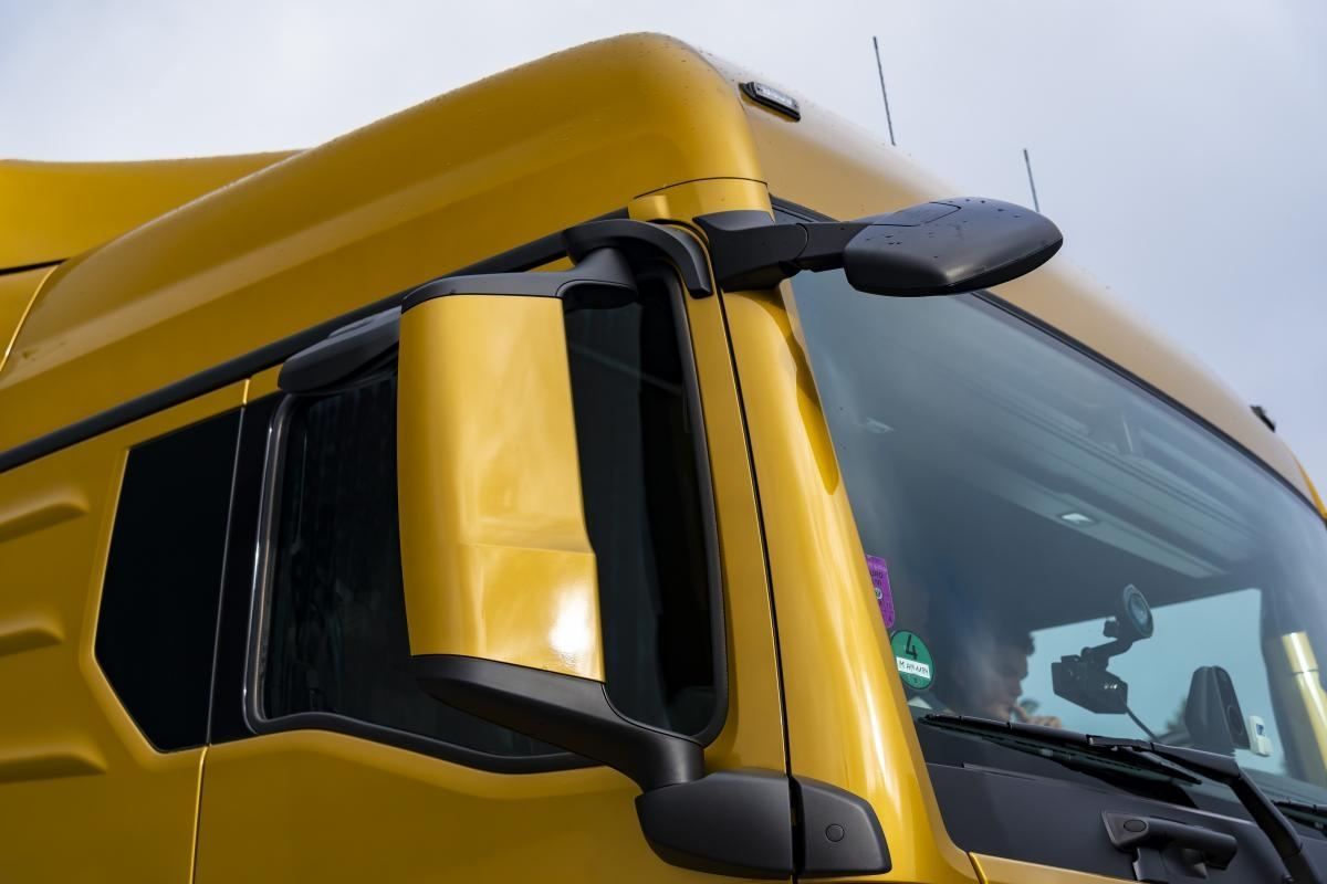 Blindsoner er en av lastebilsjåførenes verste fiender, så jeg blir litt skuffet over at testbilen er utstyrt med store, gammeldagse speilhus som bidrar til å øke disse. Det er overraskende at speilene ikke har måttet vike for digitale speil som allerede er tilgjengelig hos enkelte konkurrenter som ekstrautstyr. Kamera istedenfor speil gir også god aerodynamikk, noe MAN New Generation vektlegger med den nye bilen.