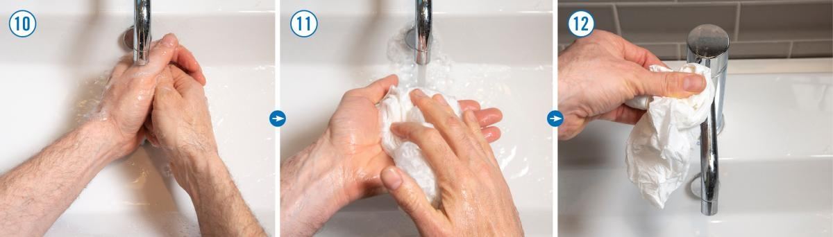 12: Benytt håndkle til å skru av vannet. Nå har du har rene hender.