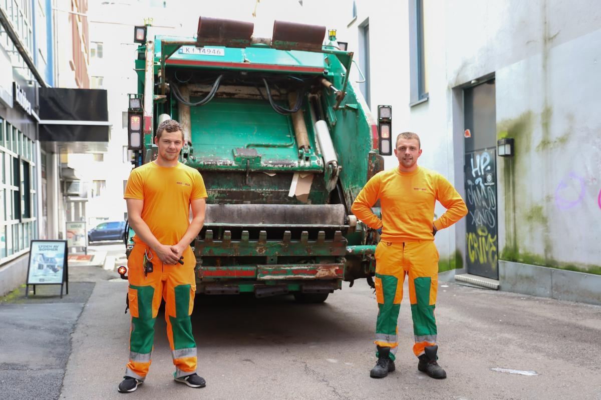 Roland og Mandas kjører komprimatorbil i sentrum og har gjort det i tre år.