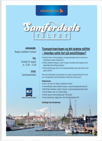 Svaret på utfordringene og løsningene for en grønn transportnæring får du hos oss i Samferdselsteltet under Arendalsuka.