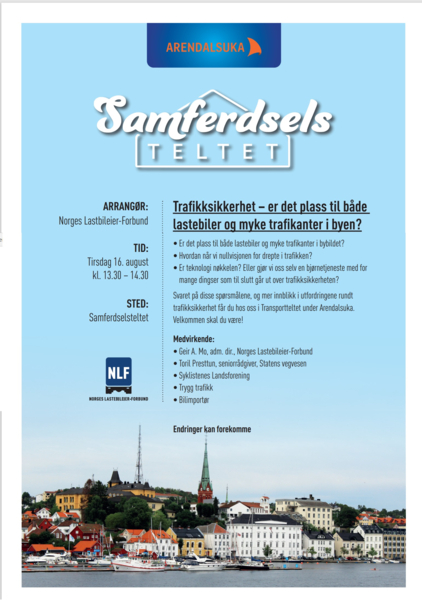 Norges Lastebileier-Forbund vil være på plass under Arendalsuka 2022, som går av stabelen 15.-19. august.