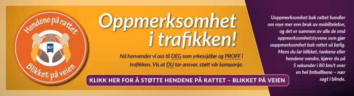 NLF minner også om sin kampanje «Hendene på rattet – blikket på veien».
