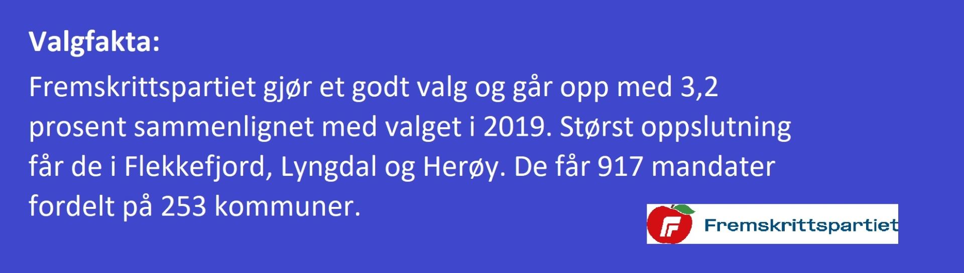 Både Høyre og FrP gjør godt valg i Møre og Romsdal. Høyre ble størst med 19,3 prosent av stemmene. Like etter følger FrP med 19 prosent og Ap med 17,1 prosent. Industri- og Næringspartiet gjør det bedre enn ved forrige fylkestingsvalg. Partiet har nå 5,3 prosentpoeng mer enn resultatet for fire år siden.