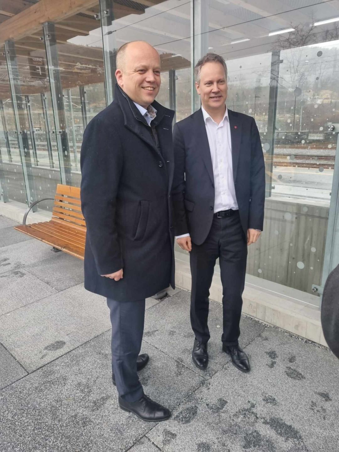 NLFs regionssjef, Jan Ove Halsøy, melder om god stemning, latter og glede da samferdselsminister Jon-Ivar Nygård og finansminister Trygve Slagsvold Vedum annonserte at de lover å sette av nesten 39 milliarder for gjennomføringen av K5-prosjektet.