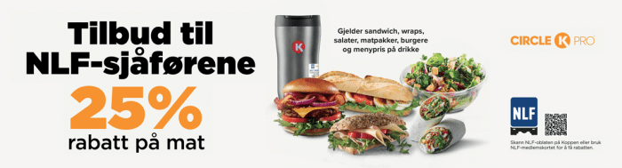 Dette er et eksklusivt tilbud som kun tilbys NLF-medlemmer. Dette gir deg muligheten til å få 25 prosent rabatt på en rekke matretter som baguetter, sandwicher, burgere og matpakker.