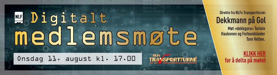 Onsdag 11. august kl. 17 blir medlemsmøtet sendt direkte fra Dekkmann på Gol. Her møter du dekkguru Torleiv Haukenes. I tillegg kommer forbundsleder Tore Velten, administrerende direktør Geir A. Mo og markedsdirektør Kjell Olafsrud i NLF.