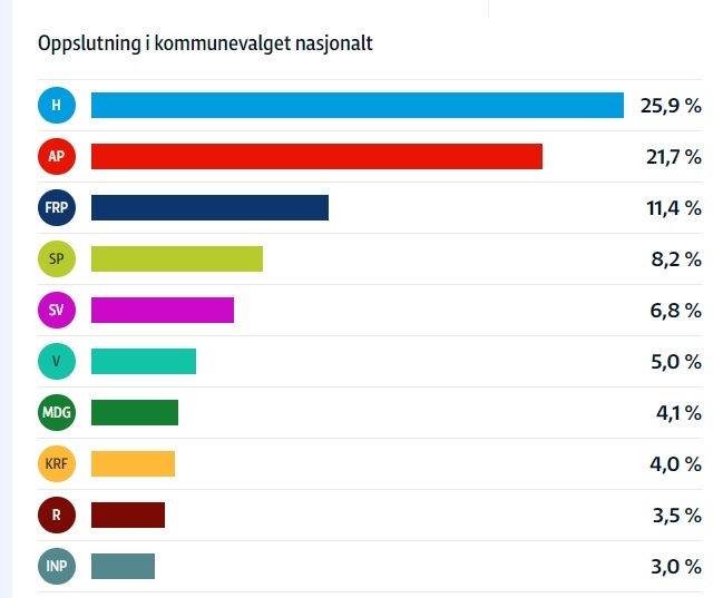 - Høyre blir Norges største parti med 25,9 prosent av stemmene
