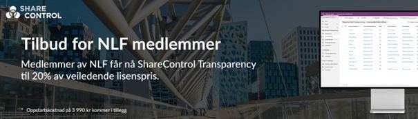 Til alle NLFs medlemsbedrifter som er omfattet av loven kan selv inngå avtale om Share Control Transparency til samme betingelser. For resterende produkter, får medlemmer av NLF 20% rabatt på årlig veiledende lisenspris og oppstartskostnader.
