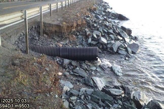 Under stormen 17. januar 2025 ble deler av veiskråningen vasket ut på grunn av høy vannstand og store bølger. Det arbeides nå intensivt med løsning